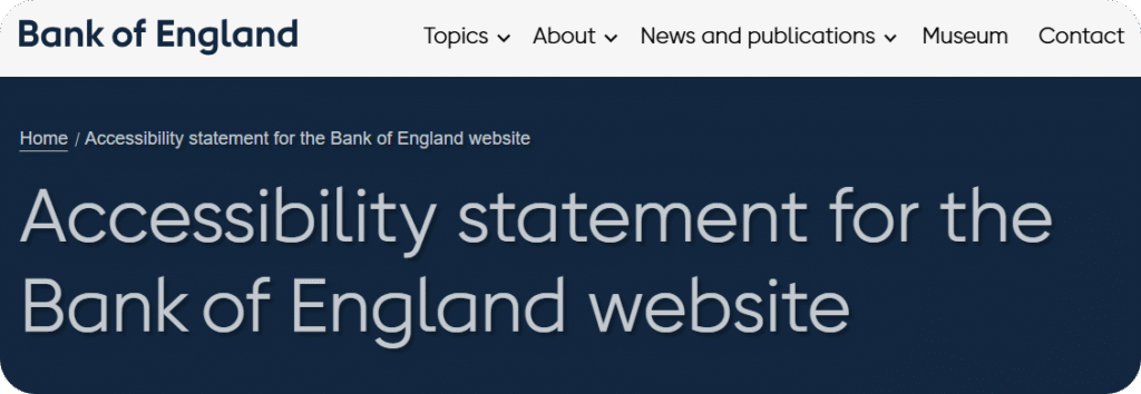 As a public-sector entity, the Bank of England follows UK accessibility regulations, requiring all new content meet WCAG standards.